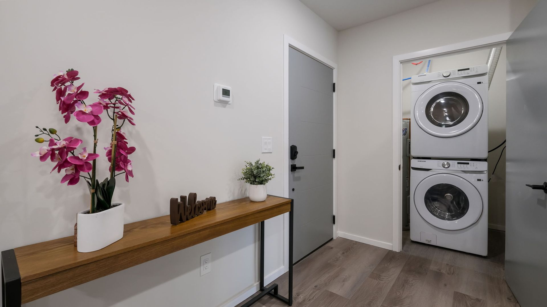 Our thoughtfully designed apartments feature stainless steel appliances, quartz countertops, and hardwood flooring, creating a modern and inviting atmosphere. Enjoy the convenience of having a washer and dryer in every unit, as well as the added security of individual locking bedrooms. Limited indoor parking available.
